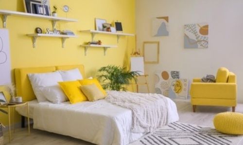 A bright yellow would be an alternative for white. It can provide a spacious feel, a relaxing environment, and a positive attitude. A too bright yellow may not be the right choice. Opt for a mellowed shade of yellow that amplifies the look and beauty of your bedroom, in addition to delivering a comfortable and soothing experience.